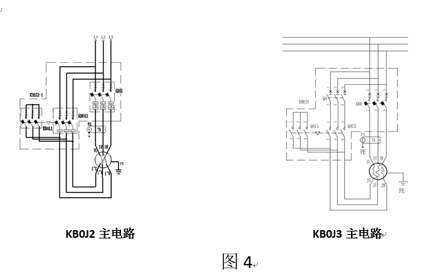 4. KB0J2、KB0J3、KB02J2、KB02J3主電路與普通KB0J、KB02J的接線方式區別是KB0或KB02主電路接線位置,普通的KB0J、KB02J接線方式:接在電源進線端主電路KB0承受的是線電流In。而采用圖4(KB0J2、KB0J3、KB02J2、KB02J3)分流的接線方式后,KB0或KB02主回路接的位置有一些變化,啟動完成后主開關KB0或KB02承受的是相電流In/3(見表4)。KB0J2、KB0J3、KB02J2、KB02J3全壓工作時流過每臺主開關的相電流的計算公式見表4。(電纜的截面積選擇:引至電動機端的電纜截面積承載的電流不小于分流后,流過主開關工作電流值;引至星三角減壓起動器進線端的(進電源端)電纜截面積承載的電流不小于電動機全壓工作時額定電流值。)