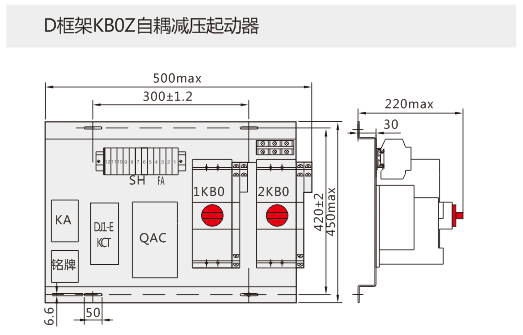 KB0作為主開關,與接觸器、時間電流轉換裝置、電氣聯鎖等附件組合,構成自耦減壓起動器成套單元KB0Z(以KB0-F消防型產品作為主開關,可構成消防型自耦減壓起動器成套單元KB0Z-F)可實現110kW及以下的電動機的自耦減壓起動控制與保護。